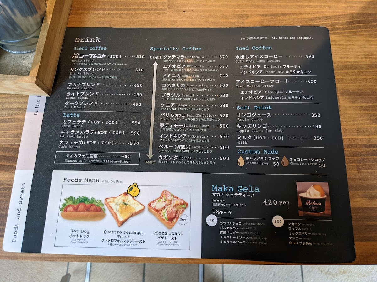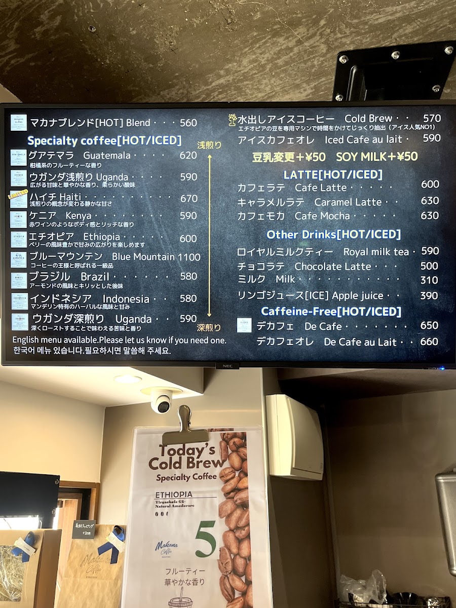 The menu at Makana Coffee Roasters Tosabori Store offers a range of carefully prepared coffee beverages alongside a selection of baked goods and light desserts. It is structured to cater to coffee enthusiasts as well as those seeking light food options during breakfast, coffee breaks, or casual visits.